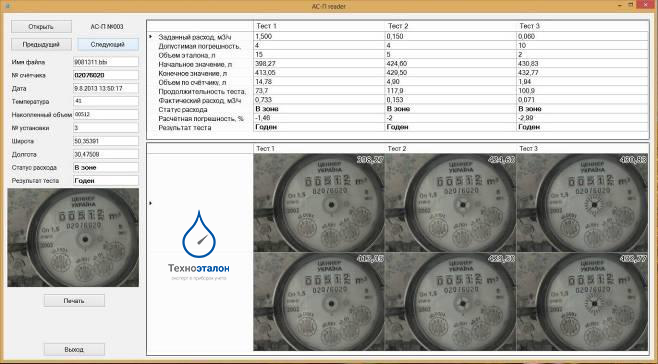 Поверка на месте эксплуатации счетчиков воды DN10, DN15, DN20 методом сличения, с формированием электронного протокола поверки, на основе автоматической фотофиксации показаний поверяемых приборов.